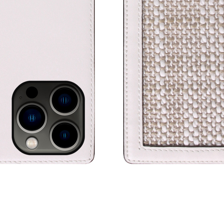 D5 Edition Calf Skin Leather Diary Case for iPhone 14 Pro (White)