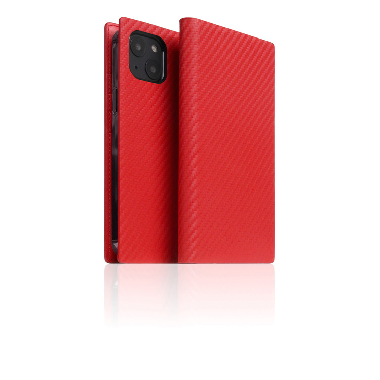 D+ Italian Carbon Leather Diary Case for iPhone 14 Plus (Red)