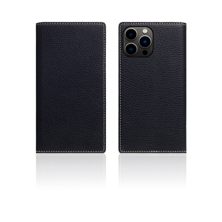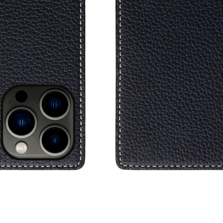 D8 Full Grain Leather Diary Case for iPhone 14 Pro Max (Black Blue)