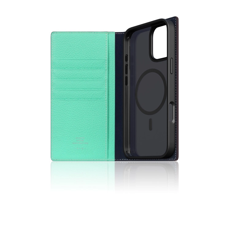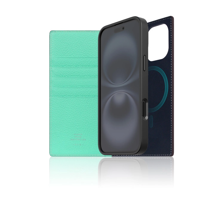 D8 [MagSafe Detachable] Neon Full Grain Leather Diary Case for iPhone 16 Series (Teal)