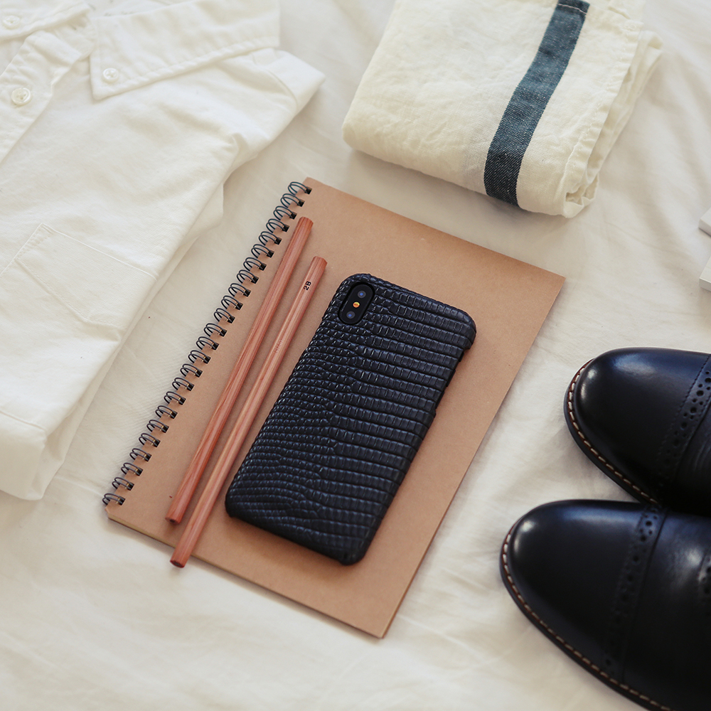 D3 Italian Lizard Leather Back Case for iPhone X / Xs Black