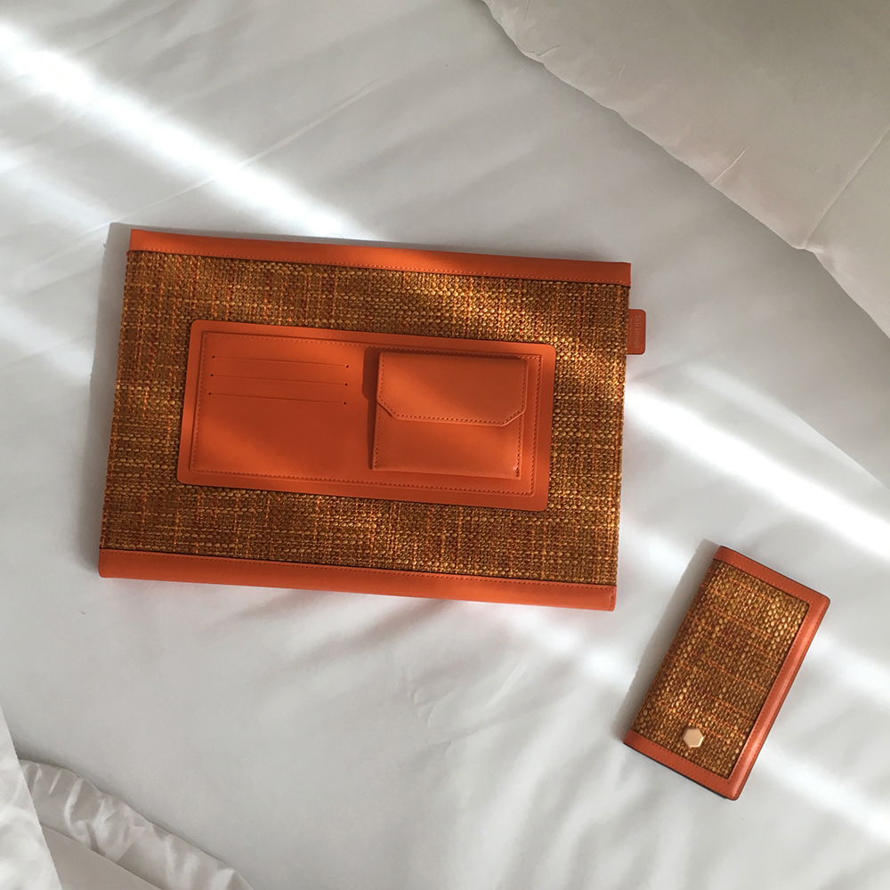 Beautiful combination of Premium Belgian Fabric with Calf Skin Leather Edition can be used as a part of fashion item. Water proof coating on fabric protects case from being contaminated by liquid.