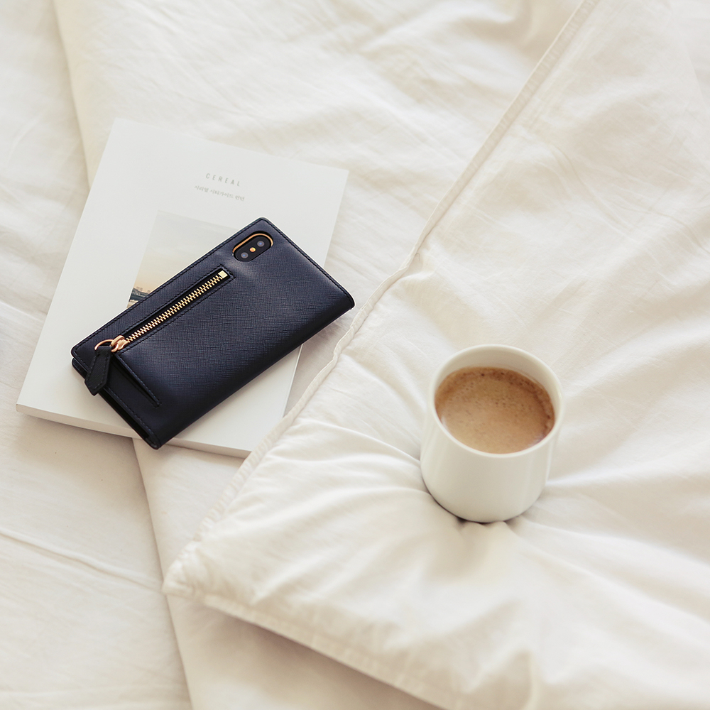 This practical case designed for storing small stuff such as coins and keys through the zipper and saffiano leather usually used for manufacturing in a famous luxury brand ‘P’ was used on purpose to emphasize its premium and simple design.