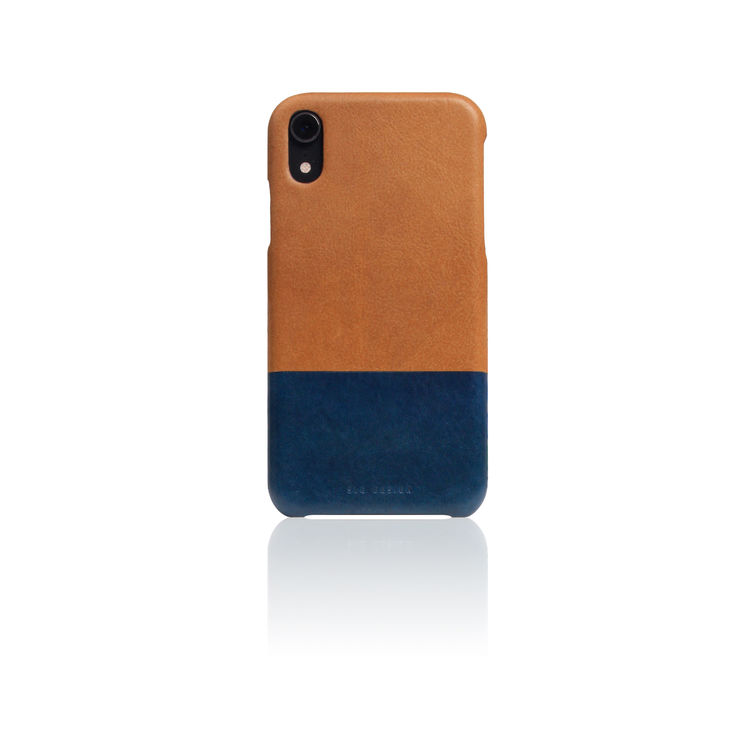 D+ Italian Temponata Leather Back Case for iPhone XR Tan & Blue